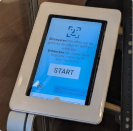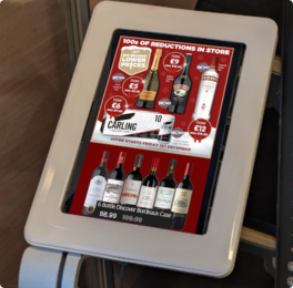Promotions of age-restricted products are shown on the tablet to age-verified shoppers.