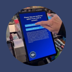 For the face scan, the customer looks at the tablet and their facial features are analysed in real-time. Instantly showing the age check result.